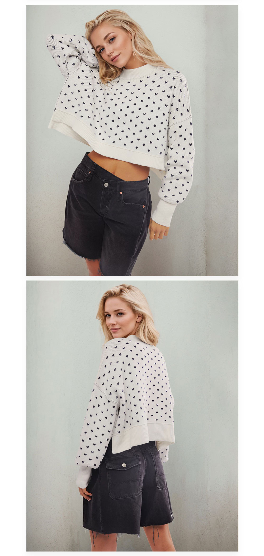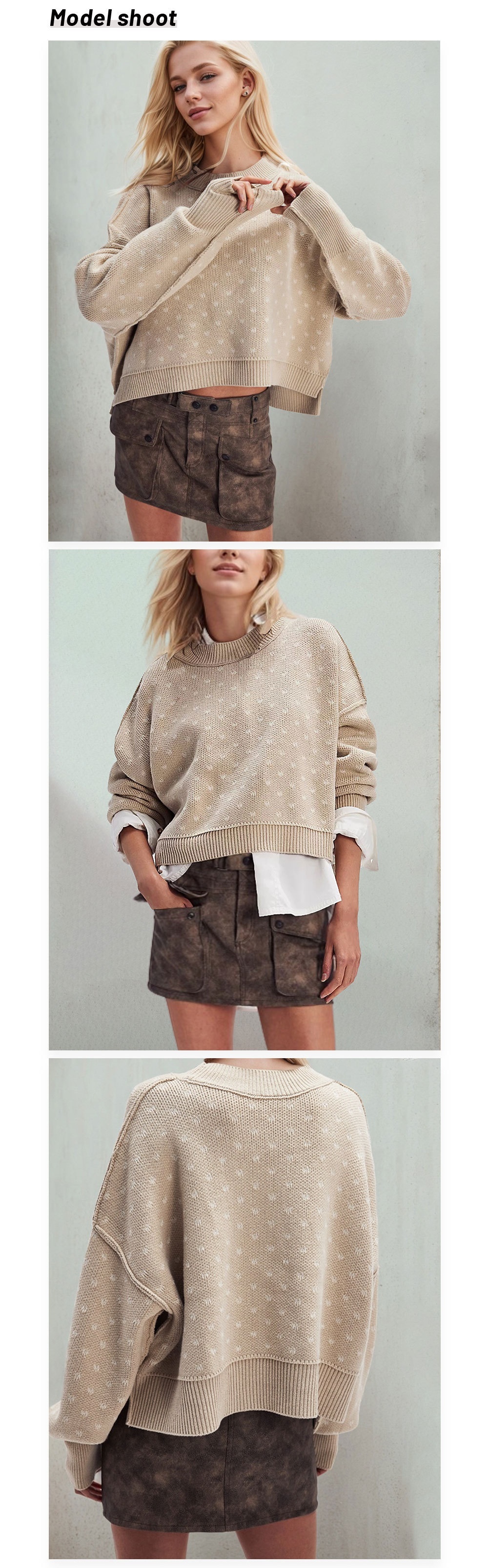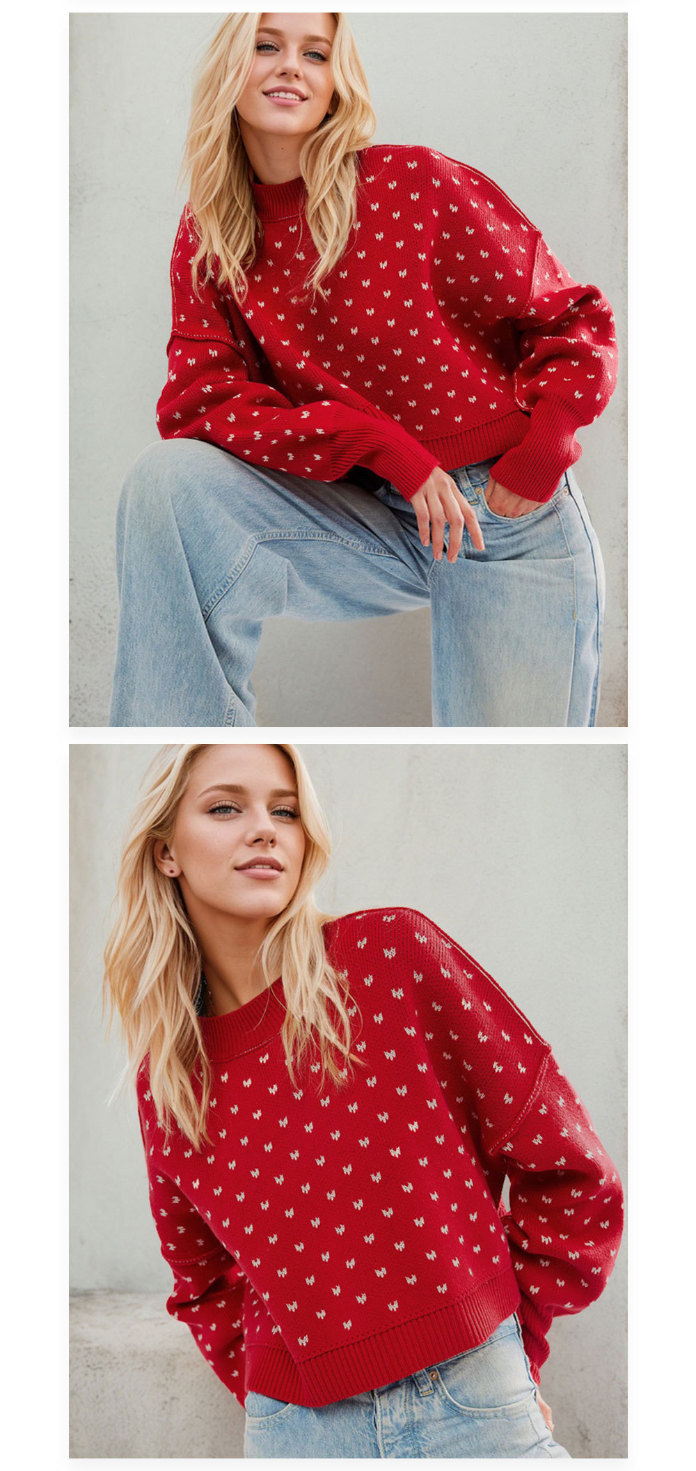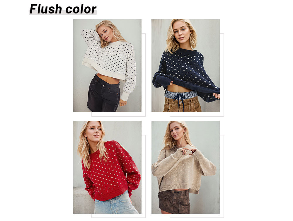 • Women's Fashion Round Neck Sweater Short Loose Heart Pullover Sweater