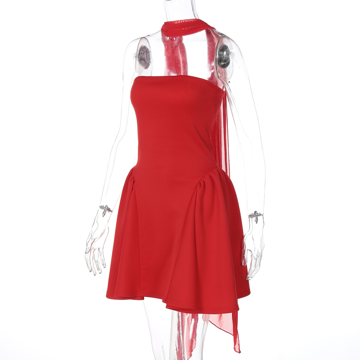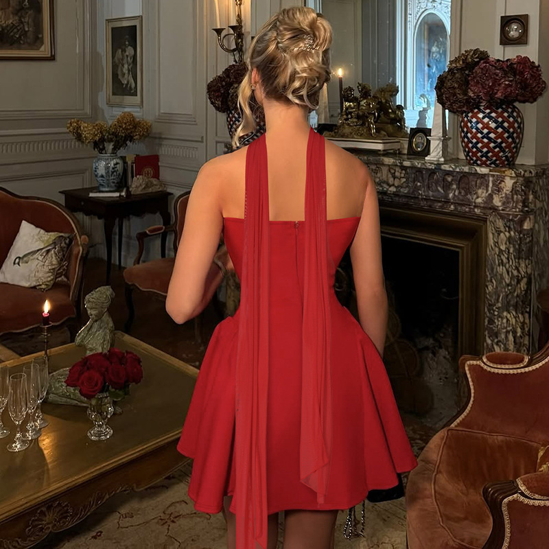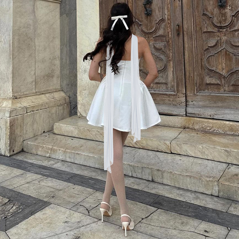 • Sexy Tube Top Dress With Back Zipper Design Ins Fashion Short Dress For Party Clothing Women